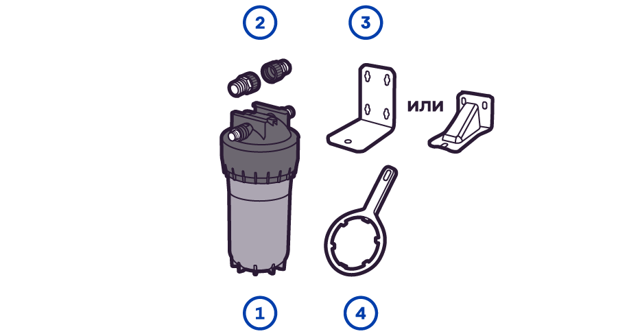 Готовый фильтр состоит из корпуса и картриджа для очистки воды. Если вы приобретаете только корпус, необходимо отдельно купить подходящий к нему картридж: это может быть картридж для механической очистки воды от ржавчины, картридж для глубокой очистки воды от хлора.